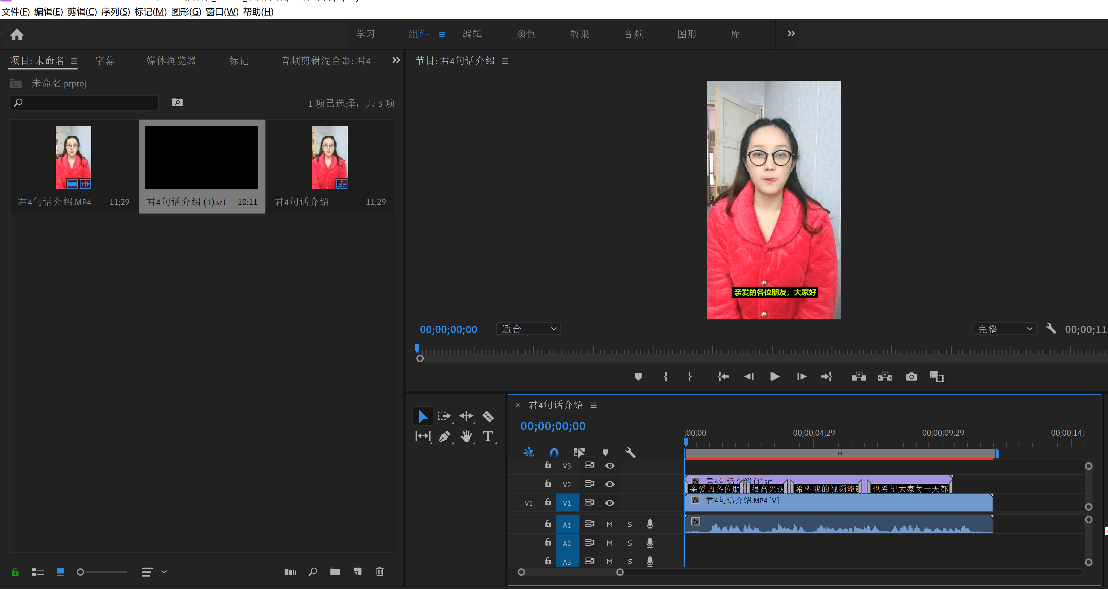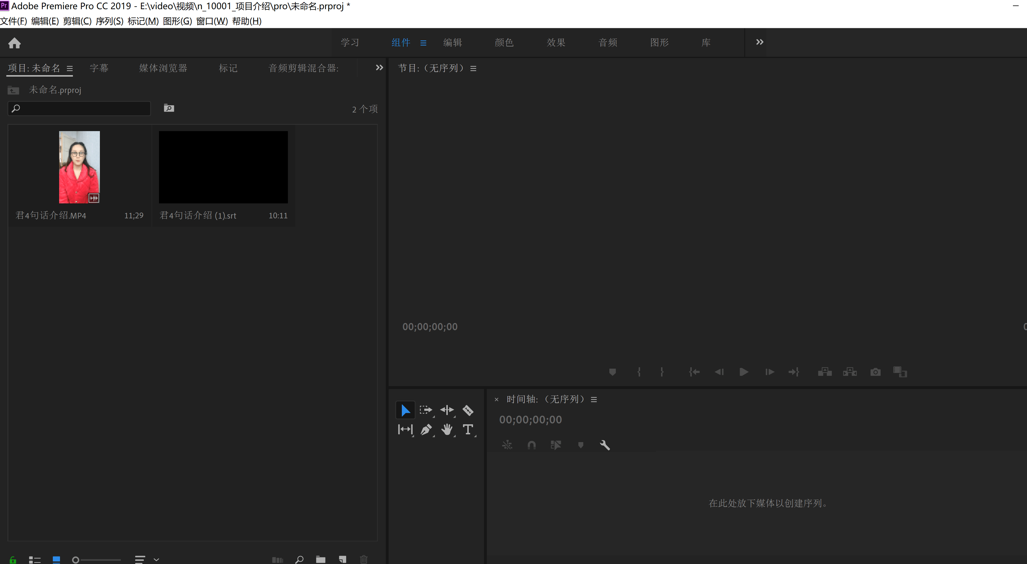- 鼠标单击srt字幕拖动到时间轴上,松开鼠标放下