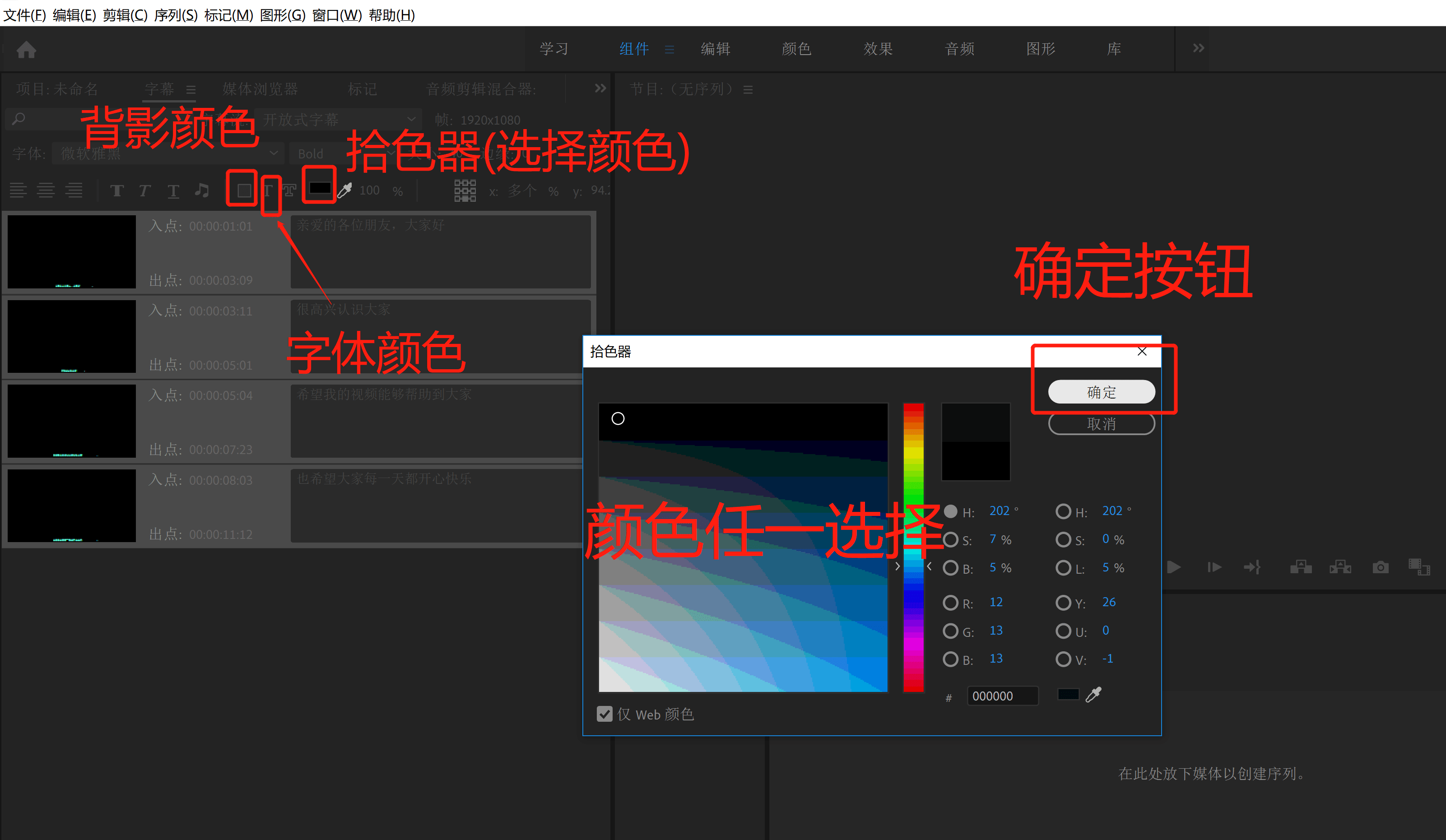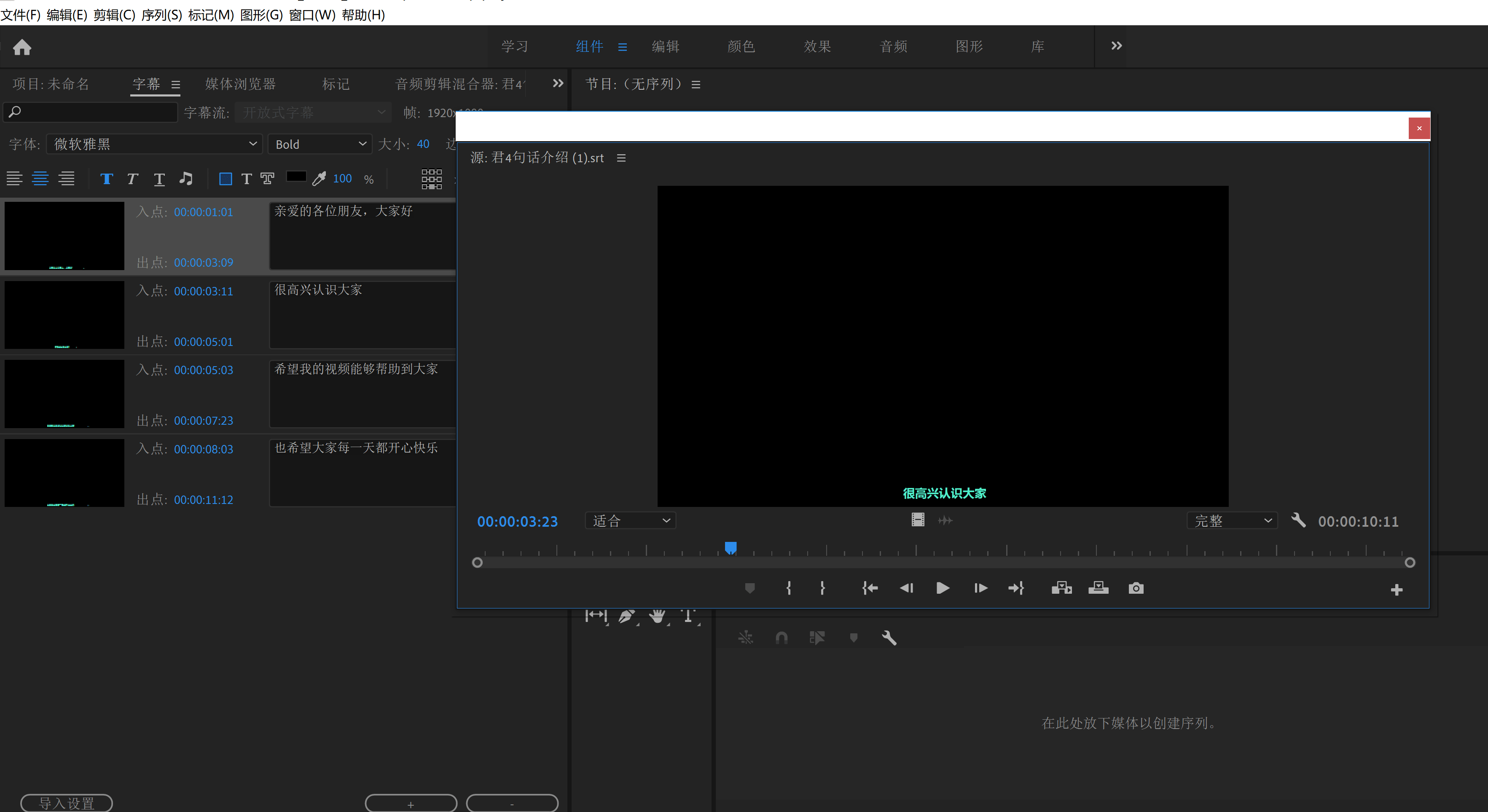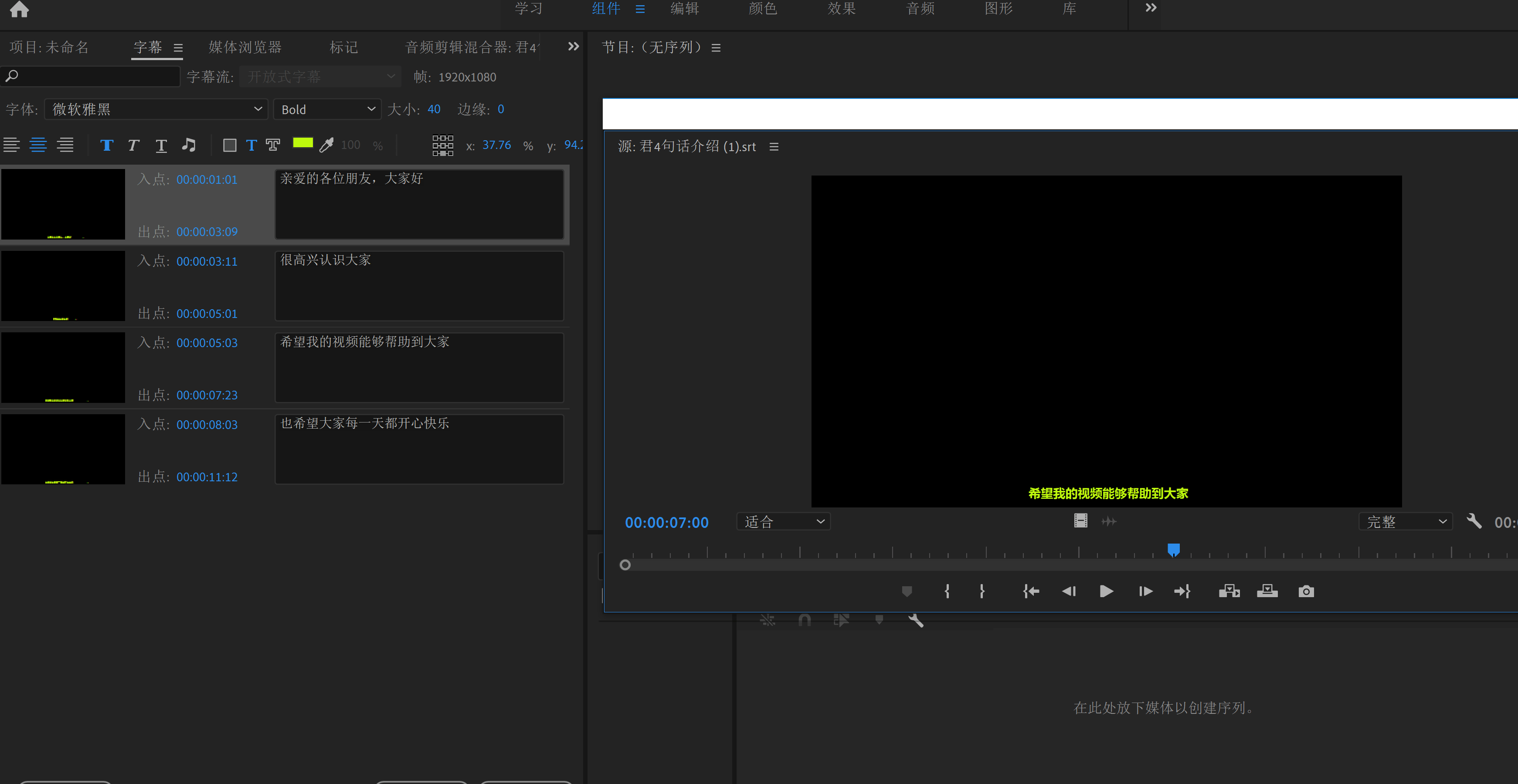 - 全选需要设置样式的字幕,因为PR中字幕是可以精确到单个字单独设置字幕的